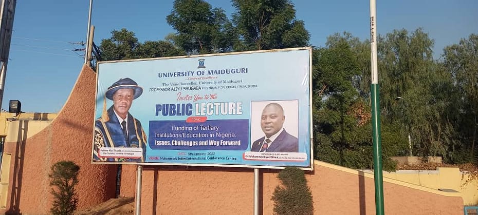 The Vice Chancellor University of Maiduguri Prof. Aliyu Shugaba Invites the general public to a Lecture/Paper Presentation on the topic: “Funding of Tertiary Institutions/Education in Nigeria: Issues, Challenges and way forward.” to be presented by Dr. Mohammed Kyari Dikwa mni scheduled to hold on Wednesday 5th January, 2022 at the Muhammadu Indimi Conference Center, University of Maiduguri, Borno State Nigeria.